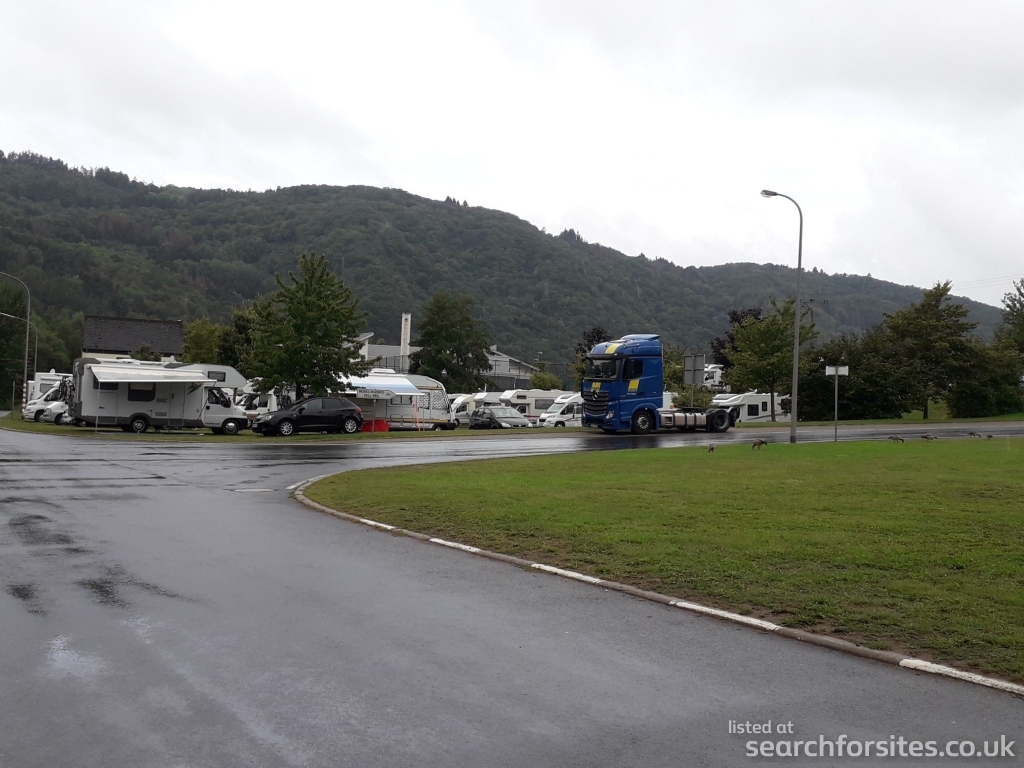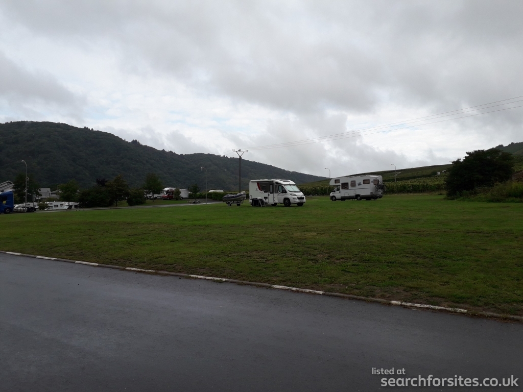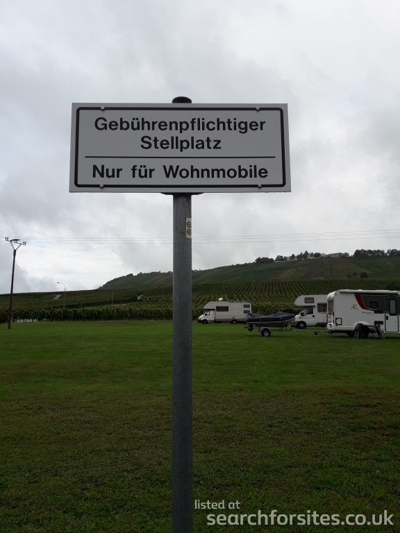 There are now (Sept 2020) two parts to this Stellplatz, just across the road from each other. Same conditions at both. Barrier entry/exit system: payment machine is in the original (furthest away from the road bridge) part. Ditto rubbish bins.Toilet cleaning, grey water dump, fresh water all located just outside of Stellplatz.
