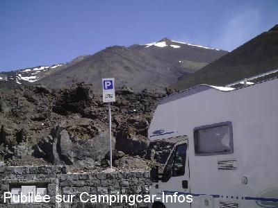 Zone réservée aux CC, à 1910 mètres d'altitude sur un vaste parking goudronné, surveillé, reconstruit après l'éruption de 2003.