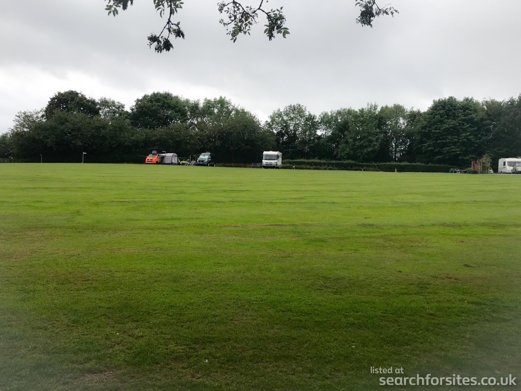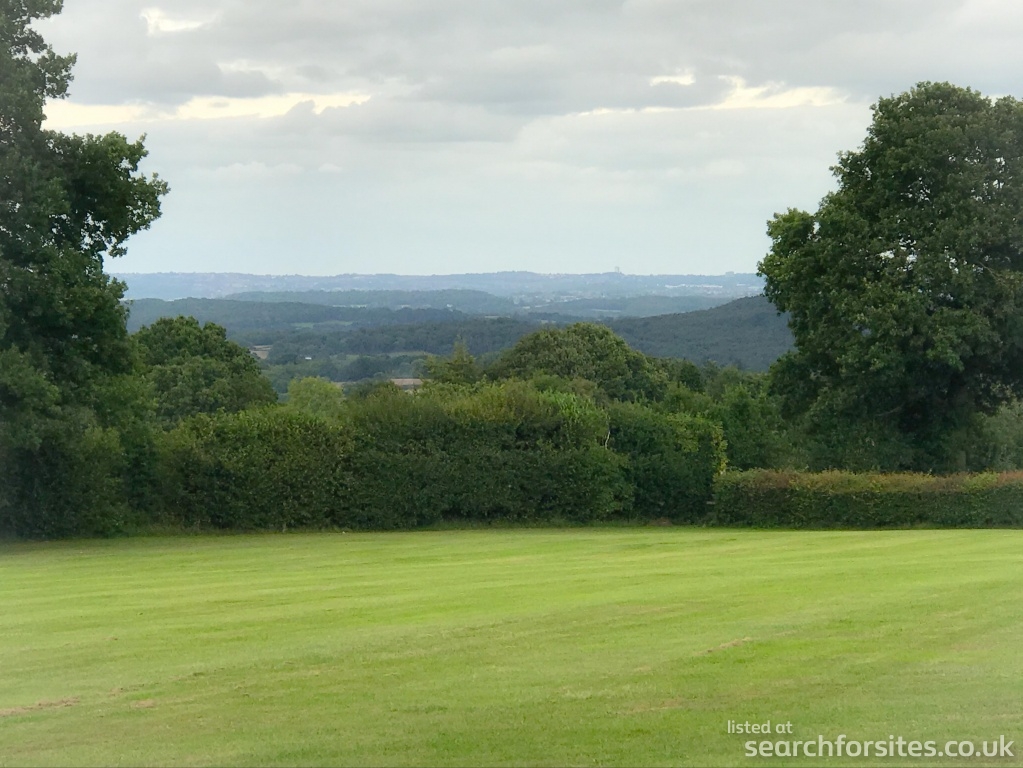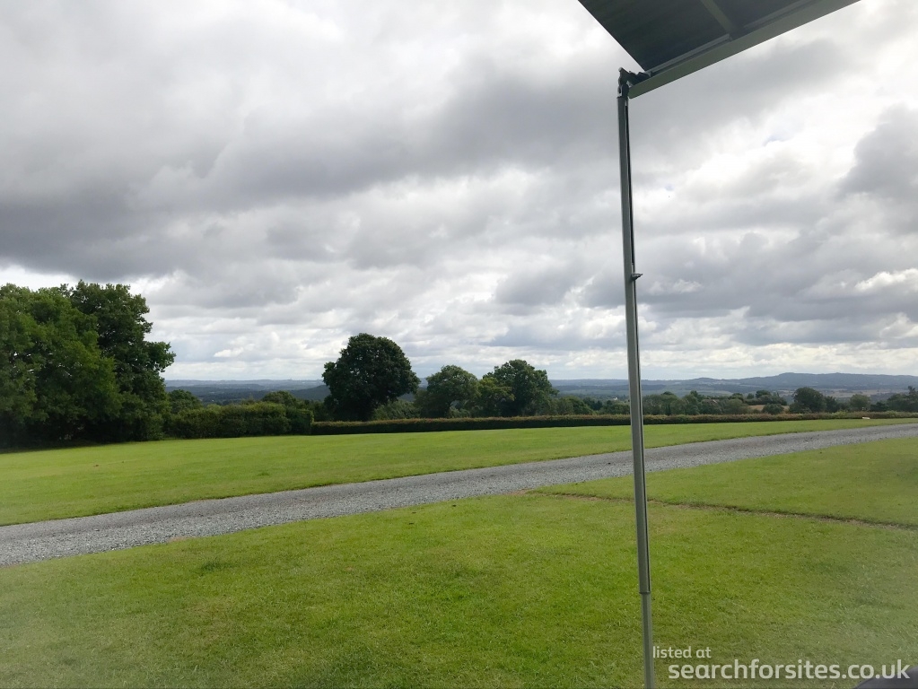 A one-acre lawned flat area with views to seven counties also Wales, weather permitting. Good TV reception.