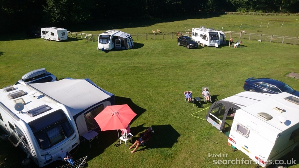 There is drinking water at 3 points around the site, as well as an additional dedicated water supply at the waste point. Electric hook-ups (seven to allow flexible pitching) give 16 AMPS and is included in the pitch fee. Also included is shower and toilet for the exclusive use of the site, one car, two people and an awning if used. Additional people are charged at £1/night and additional cars at £10.