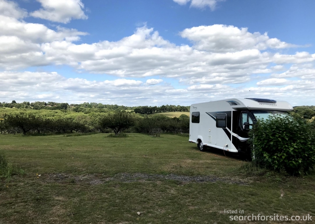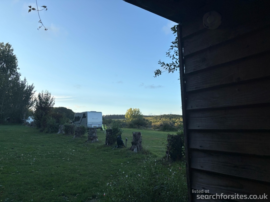 The caravan site is in front of an apple orchard which is a wonderful picture when the trees are in blossom.