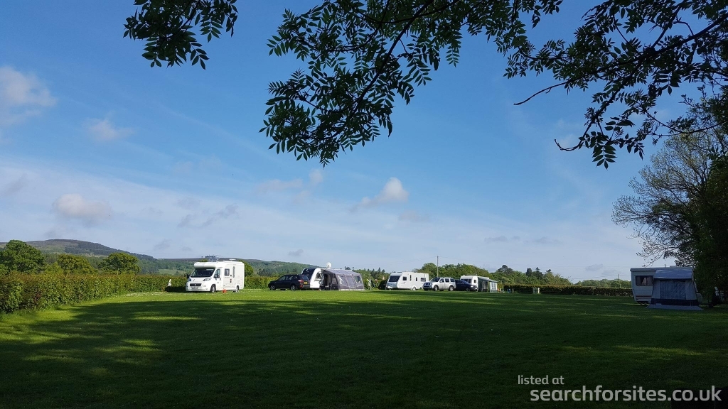 Our site is a flat and spacious lawned area with easy, wide access, electric hook up and ample space for awnings. Adults, children and pets are welcome, and we have a short woodland path that all our visitors are more then welcome to use.