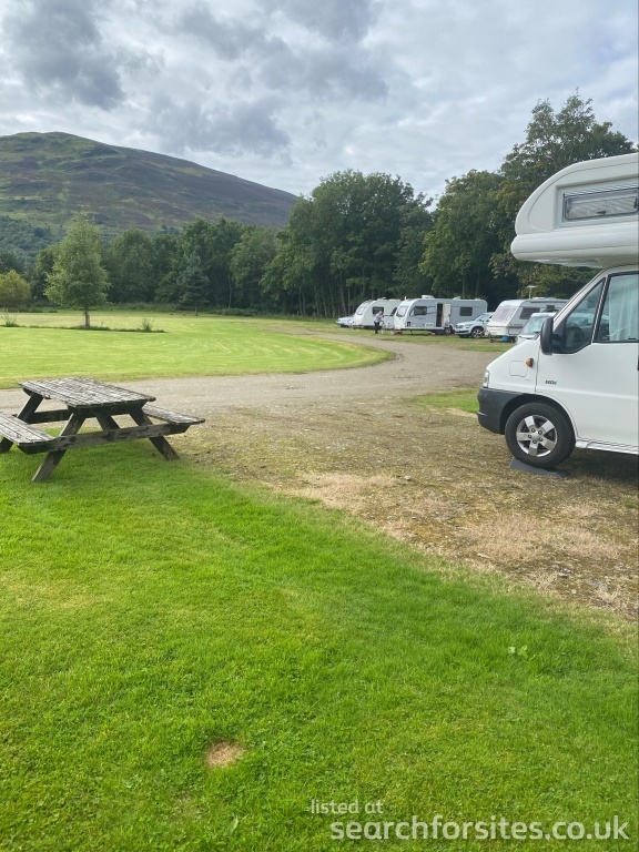 This beautiful lochside location has stunning views of Ben Ouhr and the surrounding hills and is a dog friendly site and welcomes responsible owners.