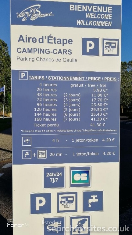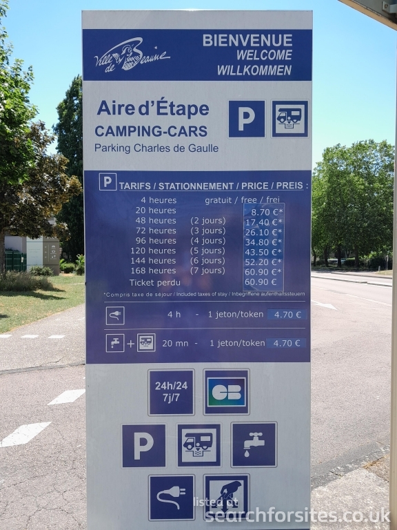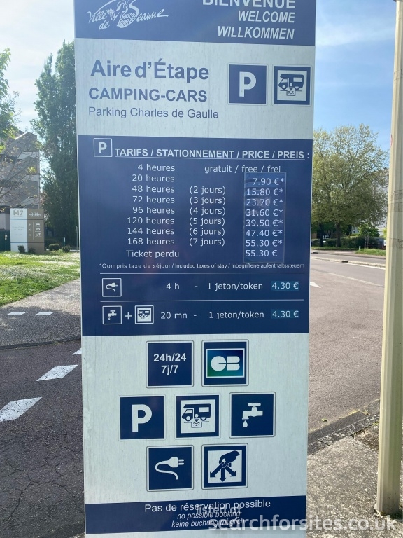 Payment by credit card for parking &tokens for service. 1 token €4.70 gets 4 hours electric or 20 minutes water