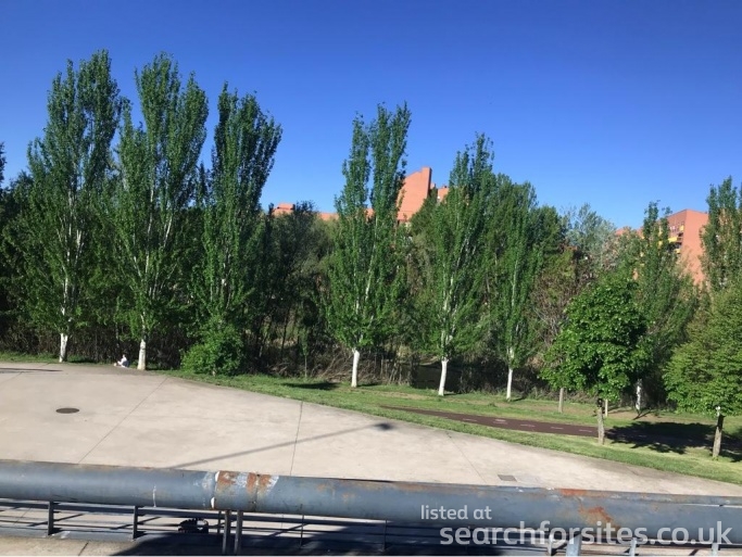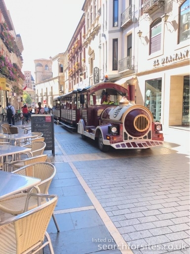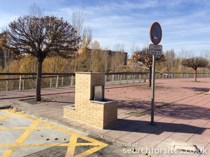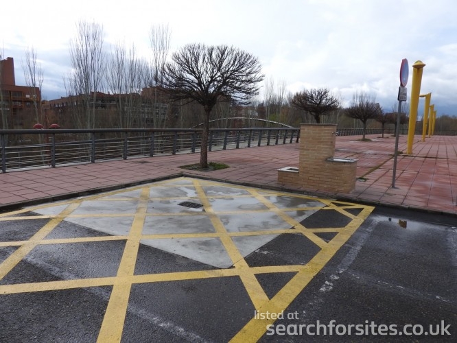 Opposite shopping centre and Mercadona supermarket, next to river. Bars and restaurants close by.