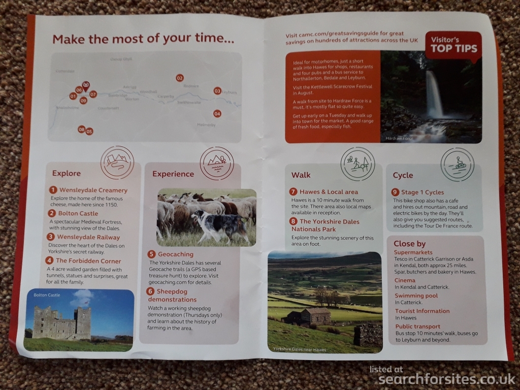 The 20 sites closest sites to Hawes Caravan Club Site