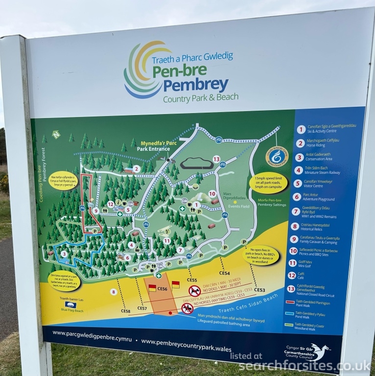 The 20 sites closest sites to Pembrey Country Park Caravan Club Site