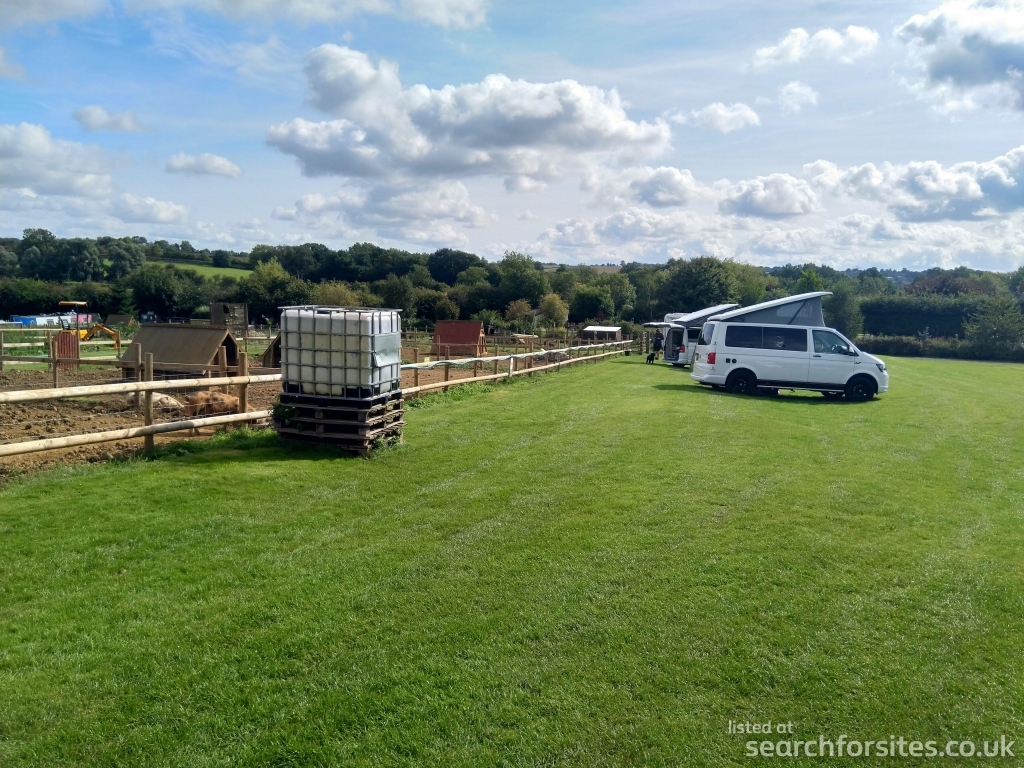 The grassed paddock used for tents and tourers is between our vegetable patches and the livestock area ensuring that there is always something to see and feeding time is an experience not to be missed.