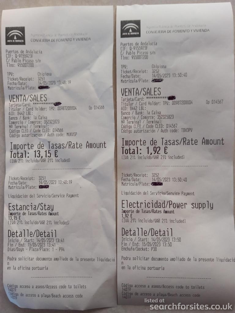 Parking, water, cassette and grey waste emptying €13.15