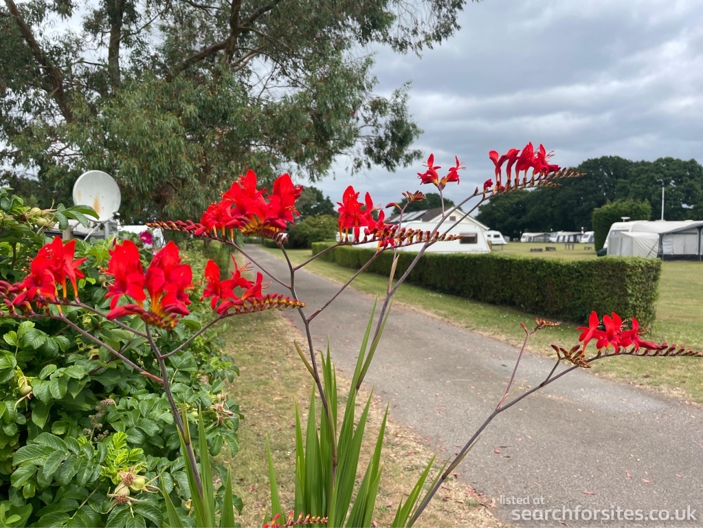 The park is level and sheltered in a quiet country setting. The pitches are very spacious, on average 40 feet apart, and most have electrical hook up facilities.