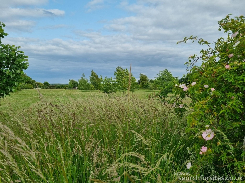 Large meadow with wild grass areas to encourage wildlife and mature trees providing shelter.