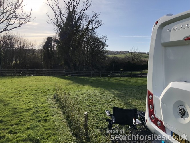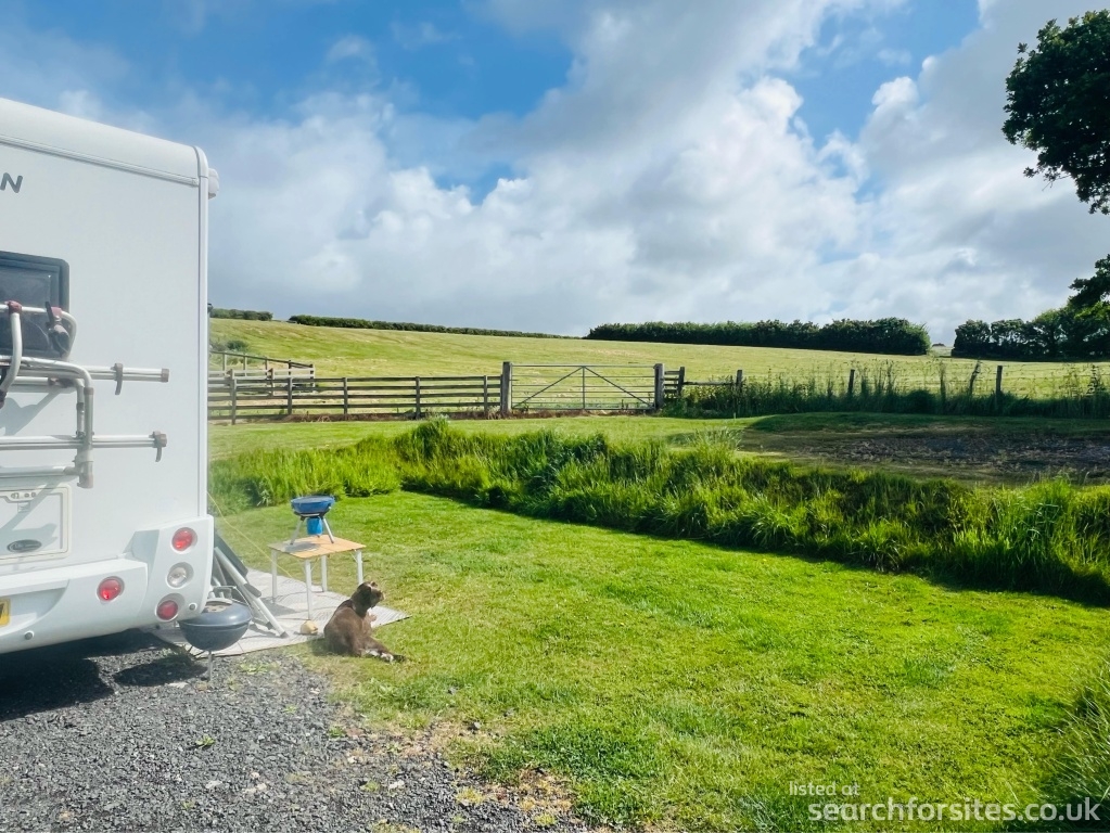 This tranquil site has 5 hardstanding pitches with half of each pitch being grass to put up an awning if you wish. Each pitch has electric hook ups and two of the pitches have their own water supply. There is a CCEP along with recycling and waste facilities. Situated on the outskirts of Bude it provides wonderful access to the North Cornwall and North Devon Coasts, with plenty of beaches and some of the best cliff walks in England all close by, this is a wonderful retreat and one where man's best friend is welcome as well! (two medium sized and well behaved dogs!) The site itself is situated on a working farm so guests are asked kindly to keep their dogs on a lead.