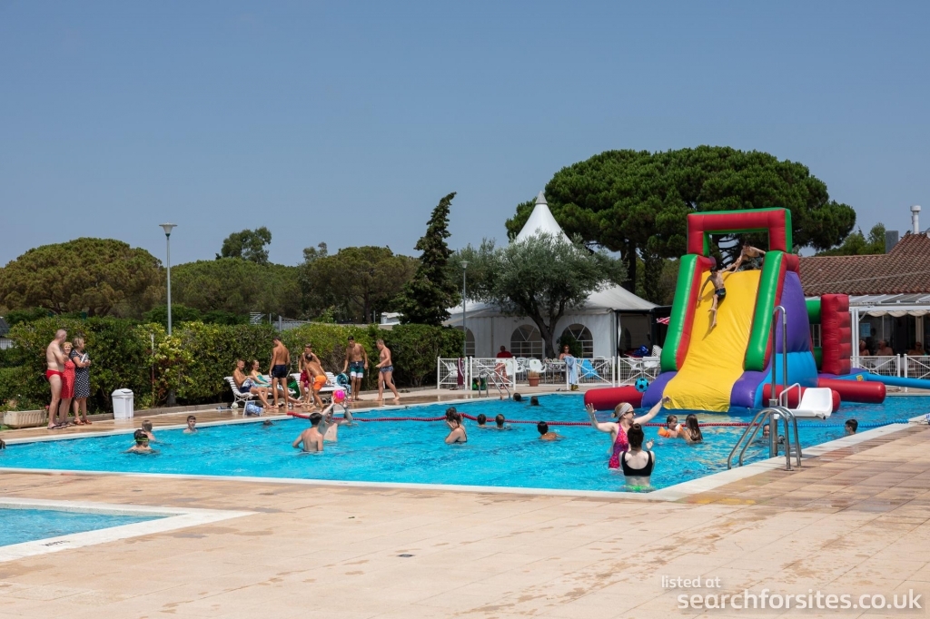 The campsite features excellent amenities, including a swimming pool, sports facilities, a children's playground, a mini-market, and an on-site restaurant serving local cuisine. It also offers various entertainment options, including organized activities for both children and adults, making it a great spot for a fun and memorable vacation.