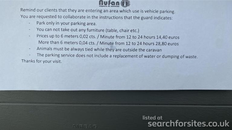 Authorised motorhome parking day or night - no services