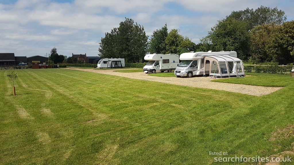 Apart from the gravel access which runs the length of the pitching area and hardstanding bays, the rest of the site is laid with grass providing ample space in which to relax or for children to play. Extensive planting to the CL boundary will, over time, provide privacy and security in equal measures. There is also an area of fruit trees planted giving the site a more rustic feel.