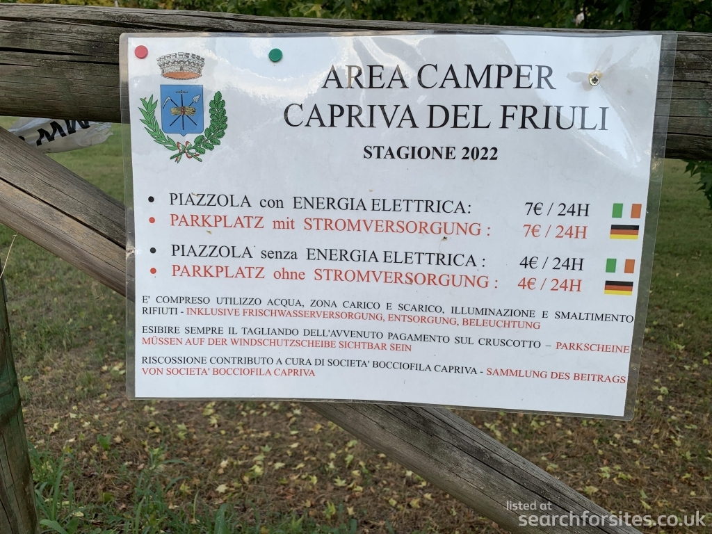 Authorised motorhome service point and night stop