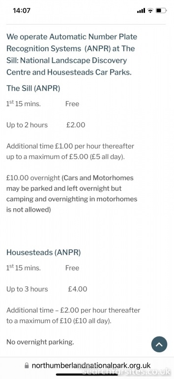 Motorhomes may be parked and left overnight for a charge of £10 but camping and overnighting in motorhomes is not allowed.