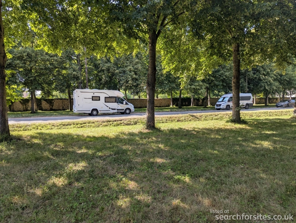 Trees for shade, not very flat in places.