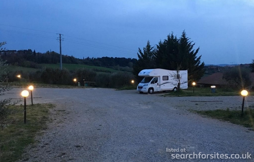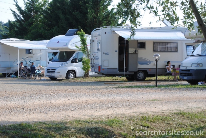 Osteria serving lovely food. Showers, toilets all incl. slight road noise. Outdoor pool.