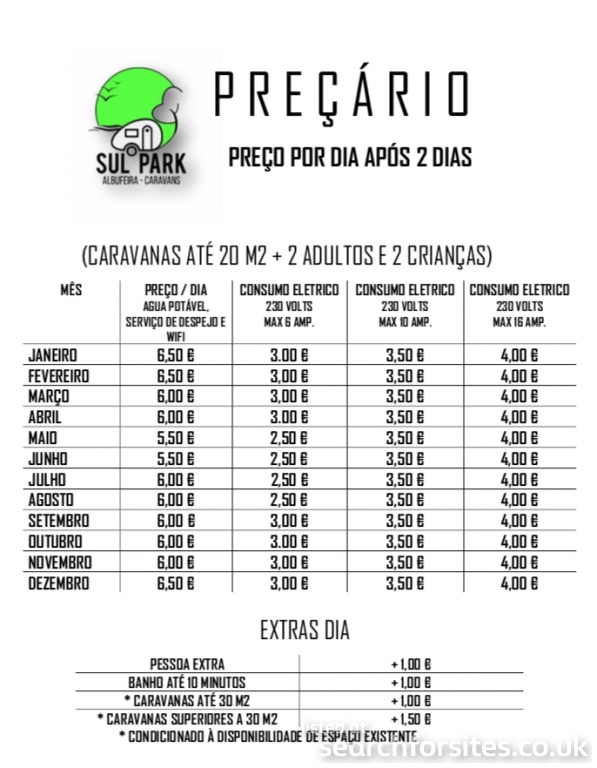 Caravans up to30m2* €1.00