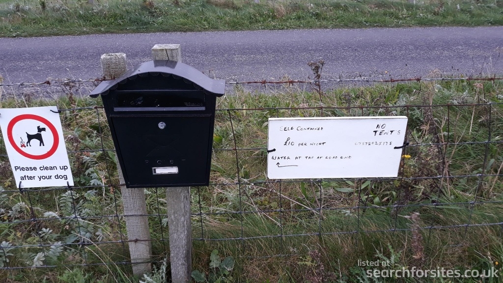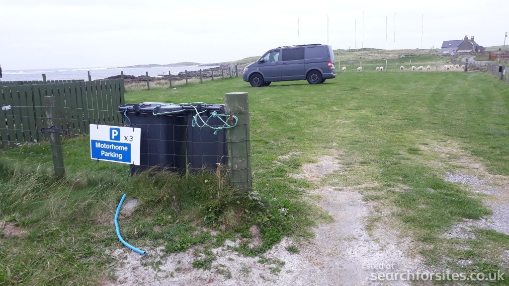There are 3 numbered grassed pitches for motorhomes and an honesty box to pay for overnight stay £10.