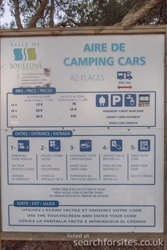 Parking, services : 1/05 au 30/09 : 16€