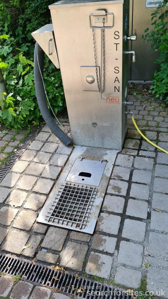 Cassette empty and grey waste free. Sanitiser Station includes a hopper and hose for grey waste as drain not accessible otherwise