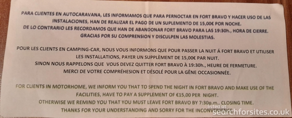 Overnight parking in camping area €15