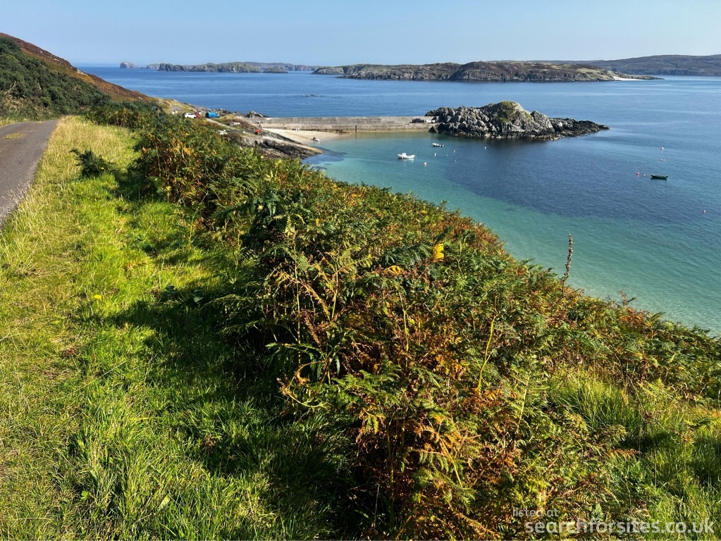 The local shop - Talmine Stores and Post Office - is about 1/4 of a mile. The Local Hotel and Pub - The Craggan - is about a mile away. The beach is very close and for most of the year is clean white sand.