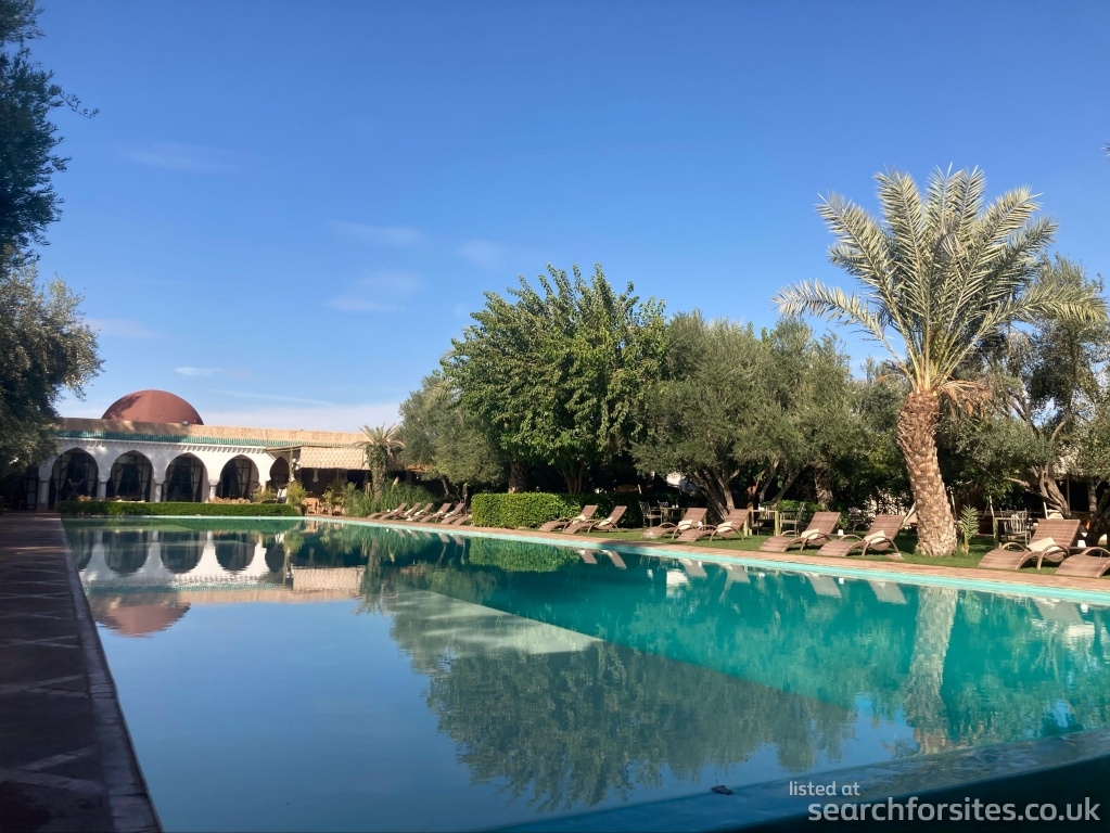 Approx. 13km from Marrakesh - there is a bus from the main road, 2.5km away, or the hotel will do a private transfer for 400dh return (up to 4 people).