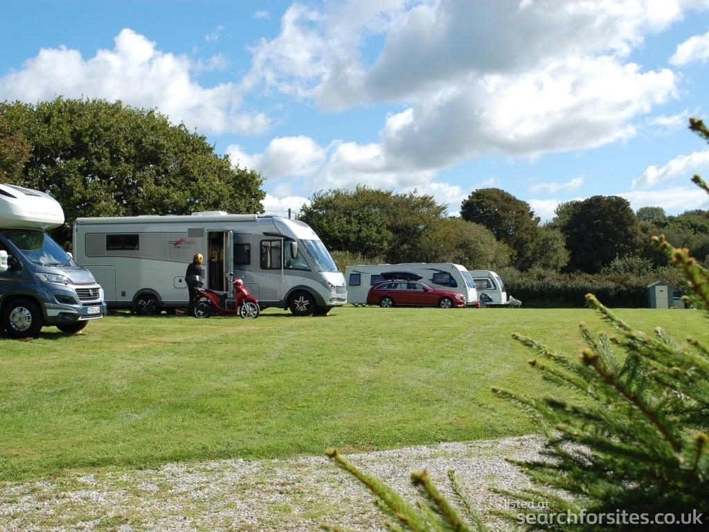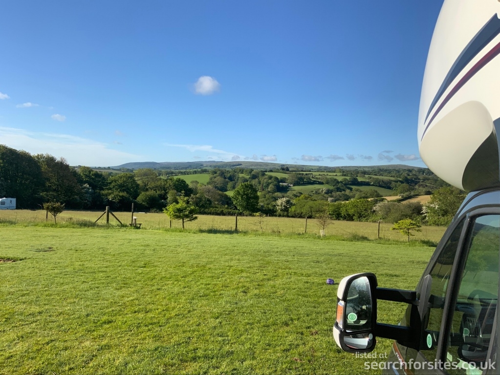 The CL site is gently sloping, south facing and well drained. The panoramic views stretch right across the top of Bodmin Moor to the upper Tamar Valley and onward to Dartmoor. It is secluded and quiet. The pitches are grass with a hard driveway into the field. There is a gated entrance to the site to ensure safety for children or animals. The driveway from the road is long enough to for a car and caravan to pull off the road safely to open the gate.