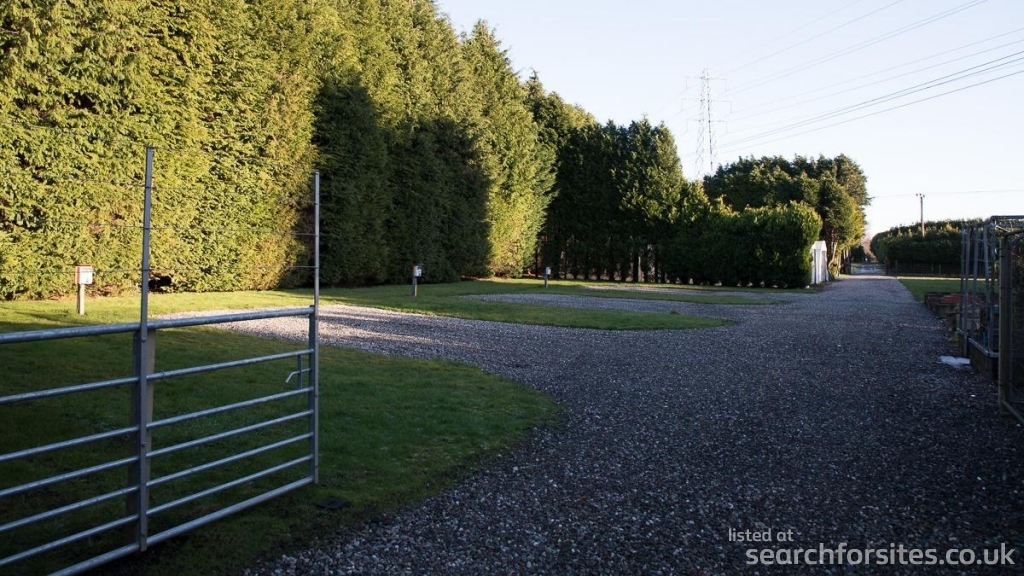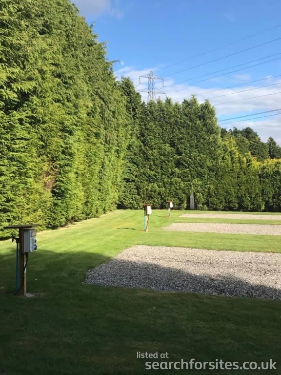 All five pitches with 16A EHU (20kWh per day allowance included in day rate), drinking water, grey water drainage and hard standing surrounded by large mature conifer hedges.