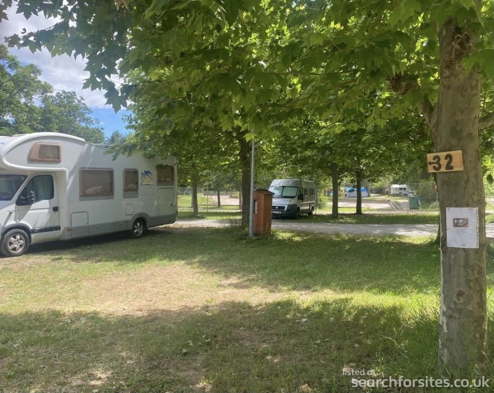 Next to the municipal campsite and pool.
