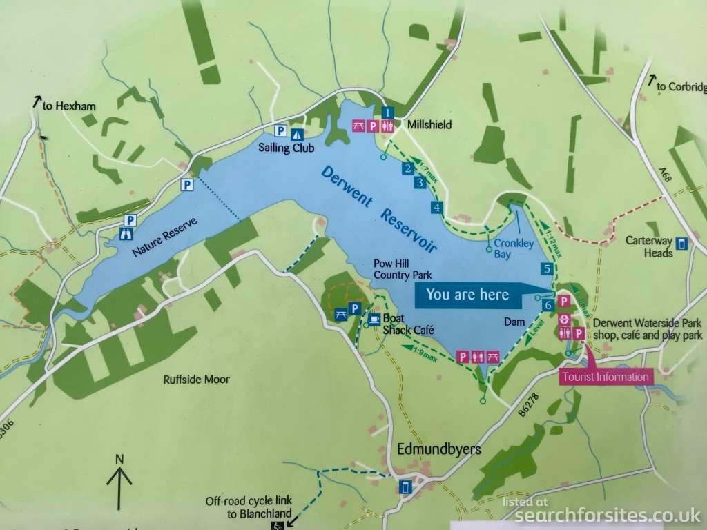 The 20 sites closest sites to Derwent Reservoir - Dam North