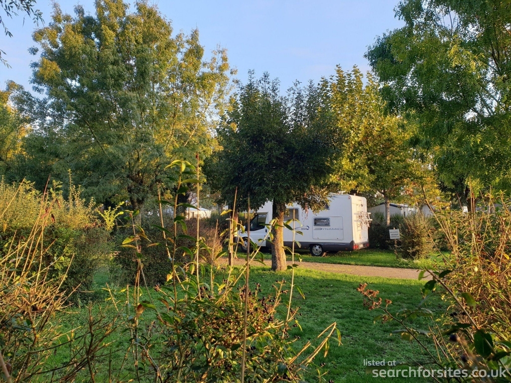 Shady site and pitches delimited by hedges
