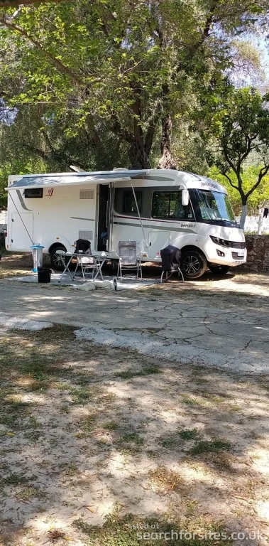 Motorhome and camping area is located behind the reception.