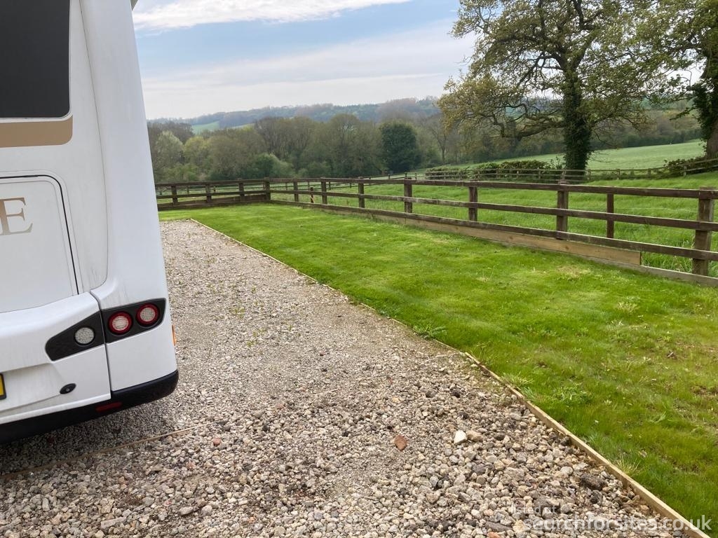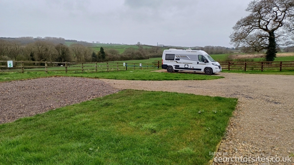 The site is set out over two tiers and has five level 6m wide x 10m long hardstanding pitches, three pitches on the top tier and two on the lower tier, each pitch has its own 16-amp EHU, drinking water and grey waste disposal point. Electric is metered and loaded via a pre-pay card system meaning you only pay for the electricity you use. Alternatively go green and use your solar at no cost.
