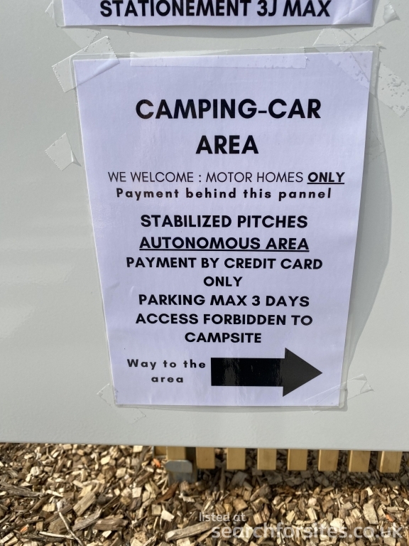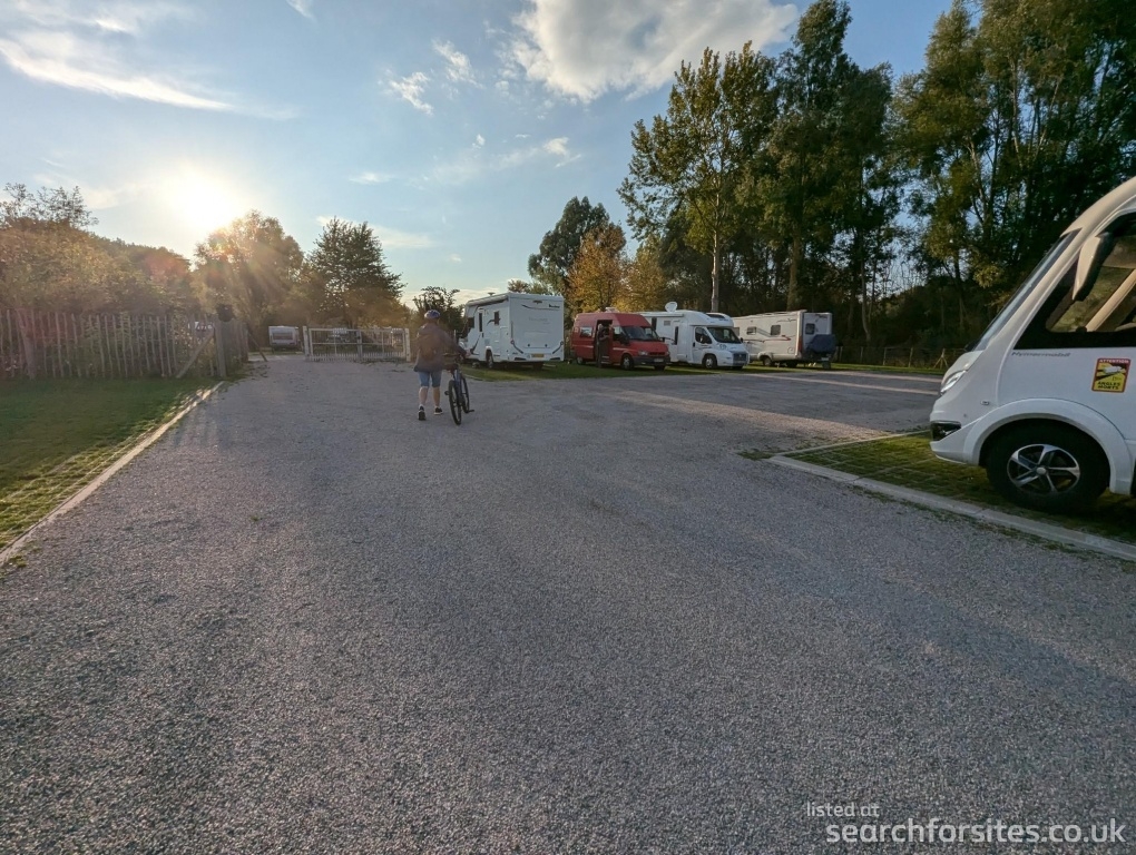 Firm stabilised grass areas. Electricity option extra. Combined service point. Users can use the campsite facilities. Quiet. Prior to entry payment at machine and a code is given to enter the site. Fabulous site