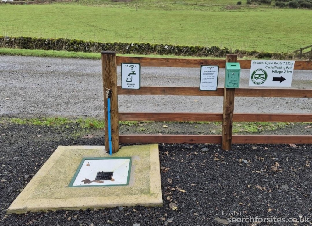 Service stops permitted ( £7 to fill up fresh water, empty waste). CASH ONLY - honesty box