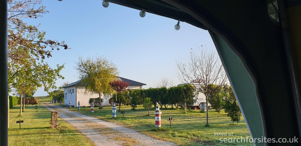 In a space of 10,000 square meters our campsite has a camping area for caravans, tents and motorhomes, two mobile homes, two cabins and a Glamping area.