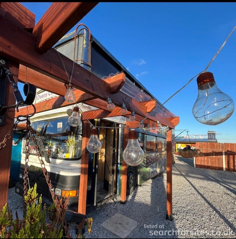 Campsite cafe farm with double decker bus