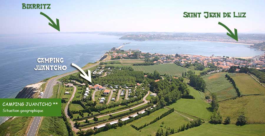 Camping JUANTCHO overlooks the Atlantic Ocean, on the cliffs 4 km south of SAINT-JEAN-DE-LUZ and 7 km north of HENDAYE. From the entrance to the campsite, you have a most impressive panoramic view of Saint-Jean-de-Luz and the Pyrenees. Socoa beach, in the bay of Saint-Jean-de-Luz is just 10 minutes' walk along the narrow path at the bottom of the campsite. Ideal for swimming and young children, the bay is also a haven for the watersports enthusiast: sailing, scuba diving..