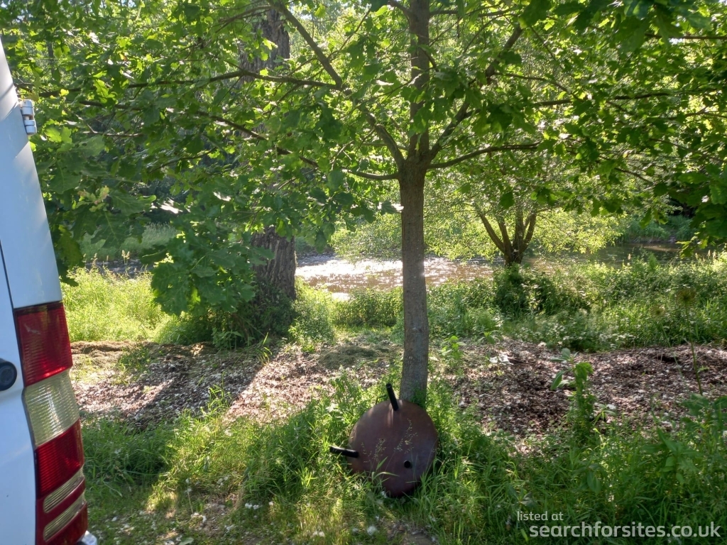 Site next to a river in a rural, dark sky setting.