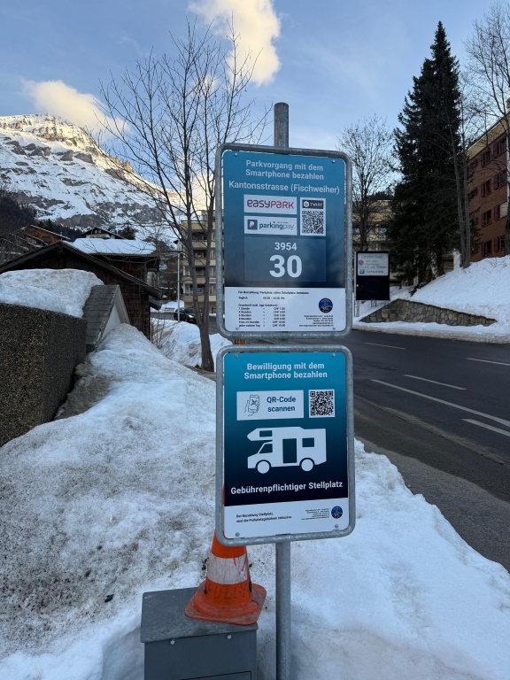 To pay for parking you need to use the Parkingpay app (or other alternative). Once you set yourself up it is great. Note however that to enter your details, the app seems to insist that you enter a Swiss postcode as part of your address (even if you have a U.K. address). To get round this, just enter any valid Swiss postcode (eg for the tourist office or anywhere). After that you should be fine.