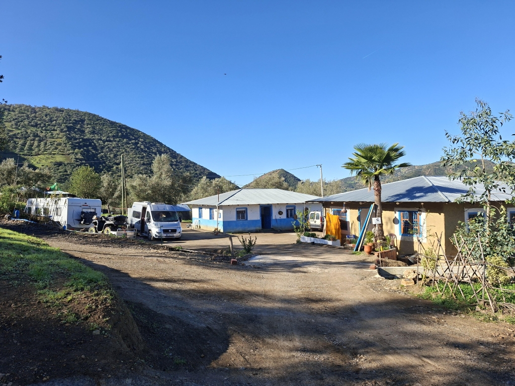 Toilet and shower without a boiler but hot shower available in their own home if you ask them. 60 dinar per night for camping, emptying of non chemical toilet available as is filling up with water.