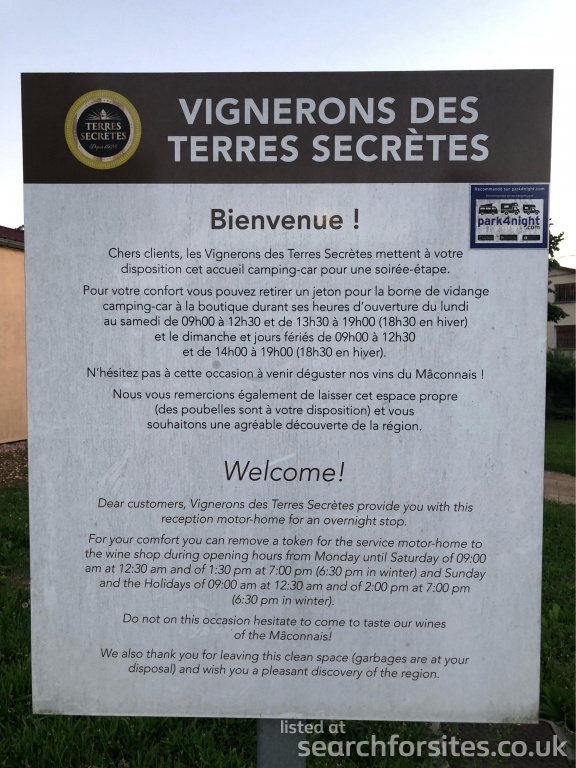 Authorised motorhome service point and night stop
