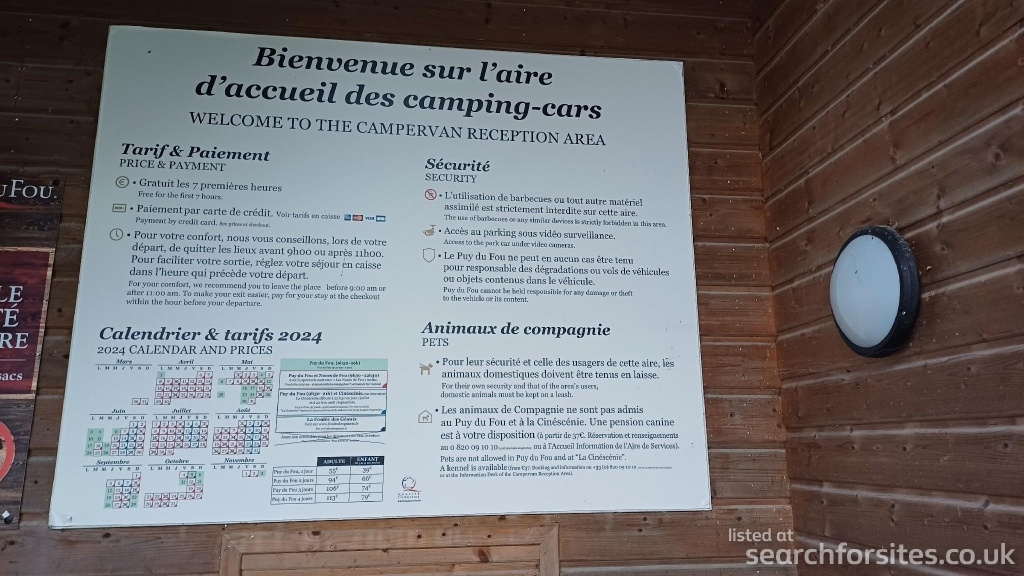 Authorised motorhome service point and night stop