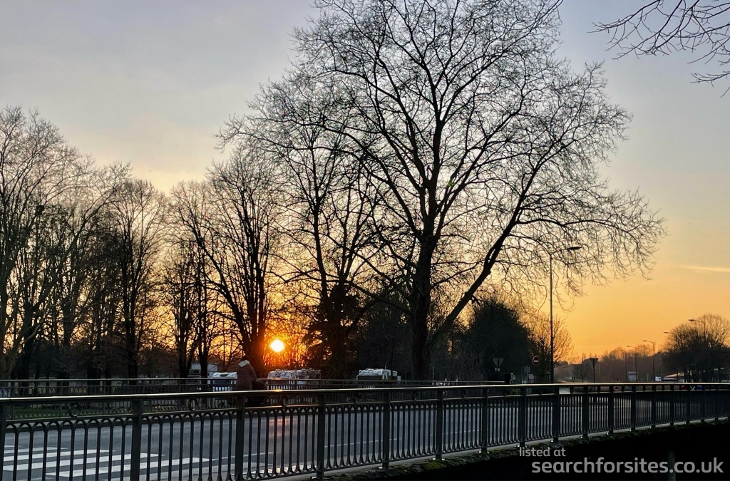 En face de la gendarmerie, entre le stade et le bord de la rivière.