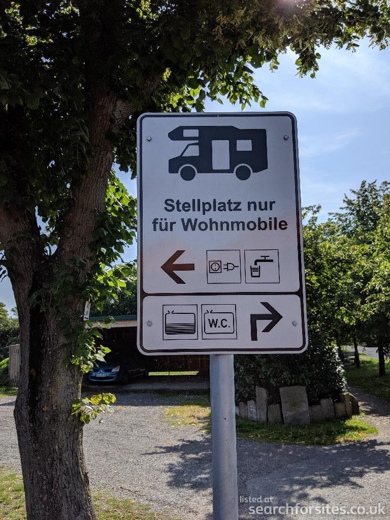 The parking space is equipped with a power column (8 connections) and a fresh water column. A toilet facility is located on the left side of Erbhof Castle behind the stage at the end of the car parking lot.